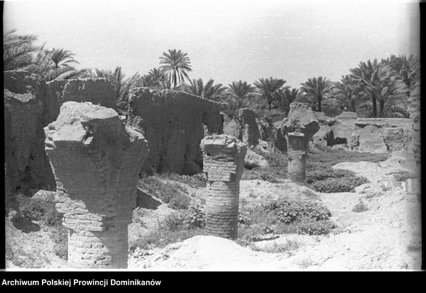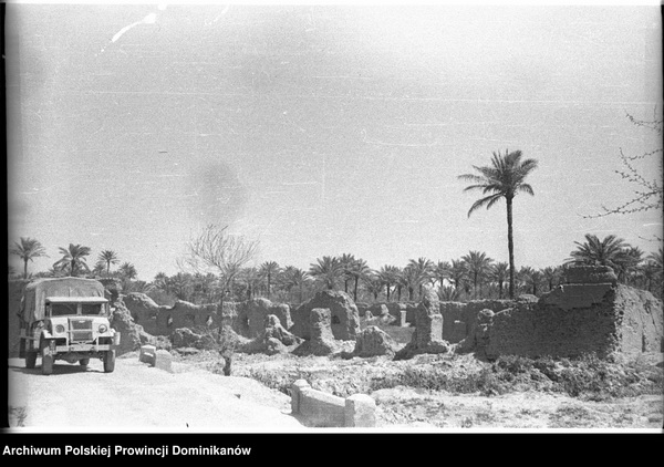 Irak, ruiny (Babilonu?). Po lewej ciężarówka Chevrolet CMP